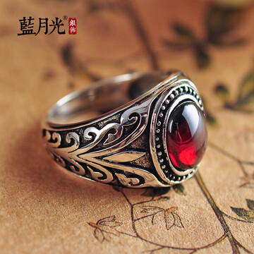 古藤花纹男士戒指食指指环生日礼物 .
