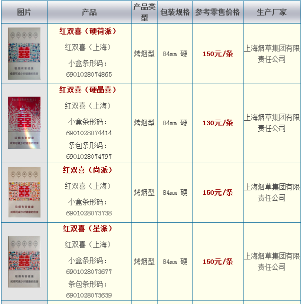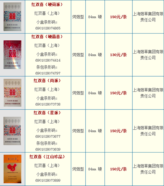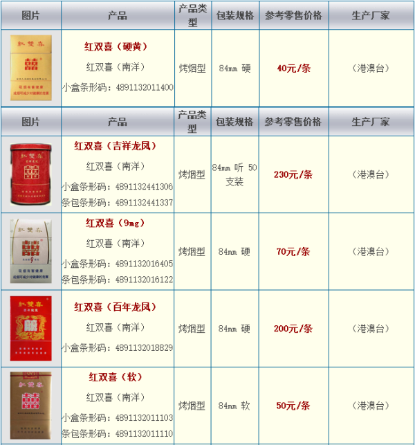 红双喜香烟现在多少钱一包?2015年红双喜香烟最新价格图