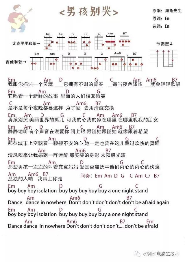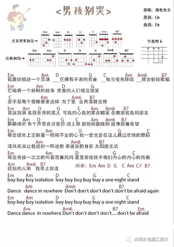 男孩别哭吉他谱_海龟先生_图片谱完整版