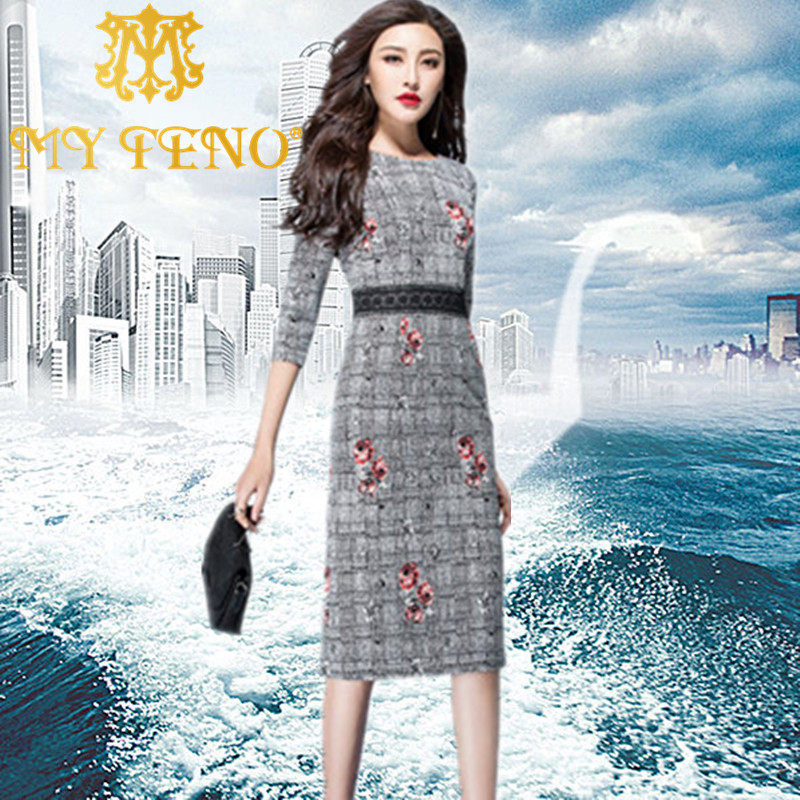 马天奴秋过膝中长款复古红色刺绣钉珠欧根纱