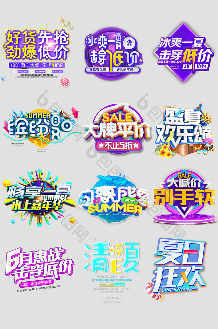 淘宝天猫夏季促销字体文案排版清凉一夏