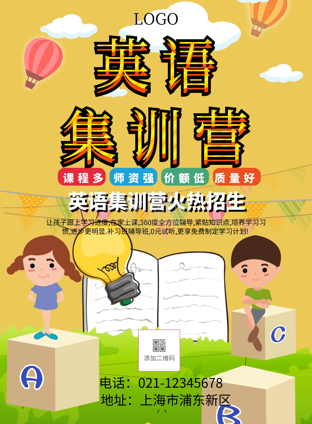 英语集训营招生横版宣传海报