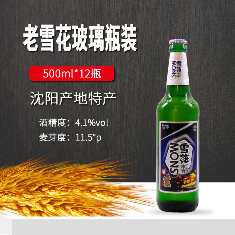 雪花啤酒沈阳老雪花啤酒500ml*12瓶整箱玻璃瓶装东北高度闷倒驴