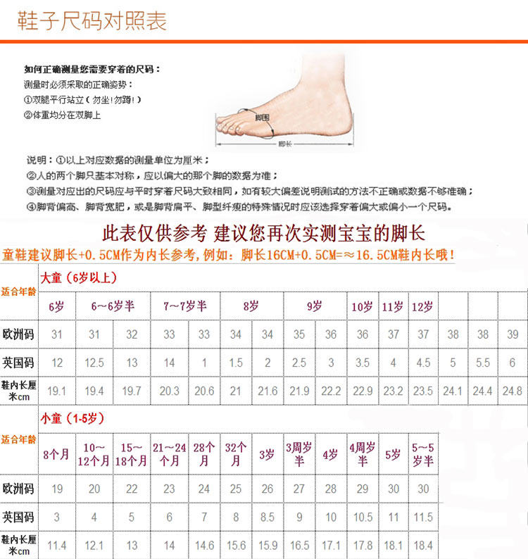 儿童鞋尺码怎么选?附中外儿童鞋码对照表