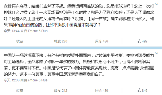 段暄微博:让郎平去教国足吧_手机新浪网