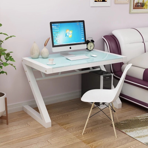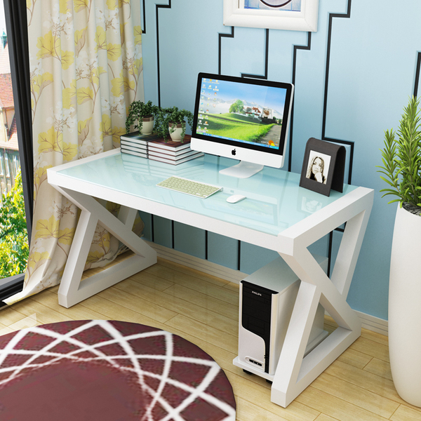 家用电脑桌台式桌钢化玻璃办公桌简约现代书桌创意桌子办公写字台- 时尚城