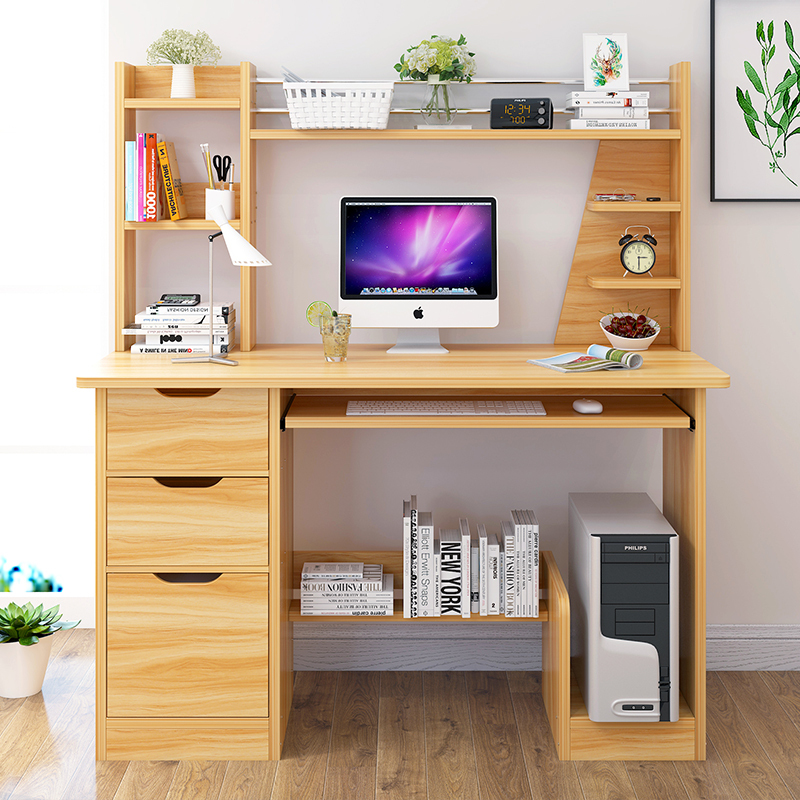 卧室简易电脑桌台式家用小桌子仿实木电脑桌书架书柜书桌一体组合时尚新款 视频