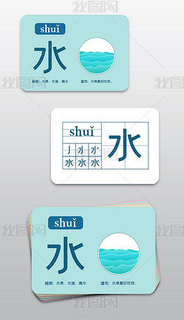 卡通水幼儿识字认字拼音笔顺练习早教卡片