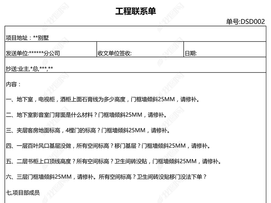 工程联系单内部联络函Excel模板