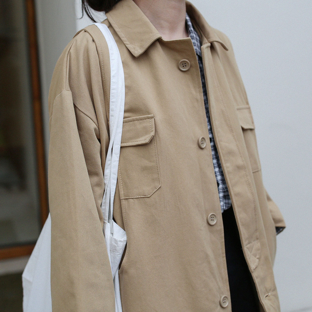 风衣外套女中长款学生宽松休闲上衣卡其色