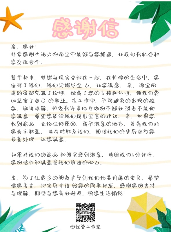 感谢信淘宝