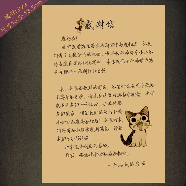 牛皮纸风格感谢信淘宝