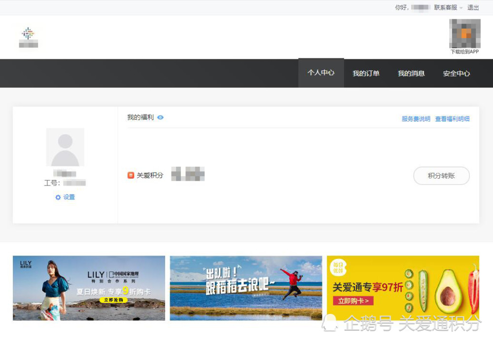 关爱积分\/关爱额度\/午餐额度等余额和收支