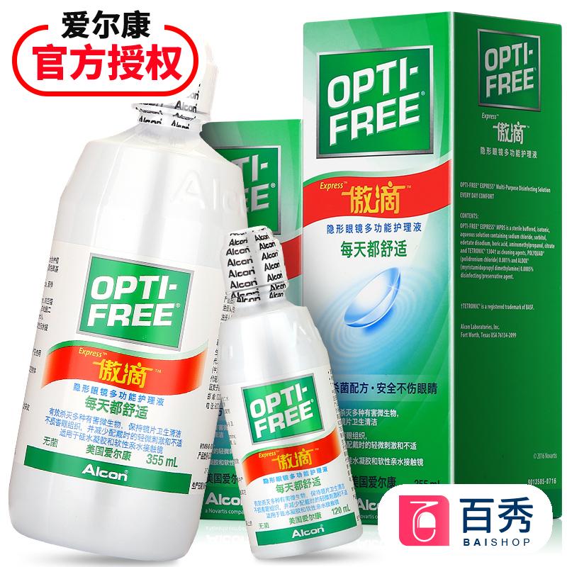 屈臣氏爱尔康傲滴护理液120ml隐形眼镜美瞳清洁药水小瓶装旗舰店,满19元减