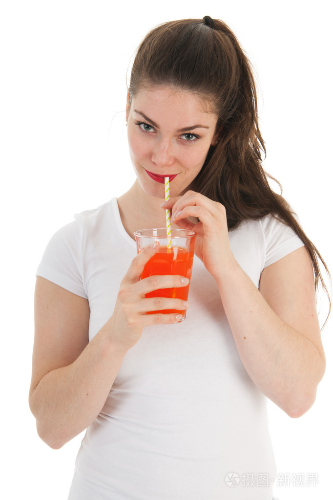 喝柠檬水的女孩