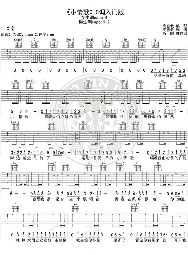 小情歌吉他谱_苏打绿小情歌吉他谱