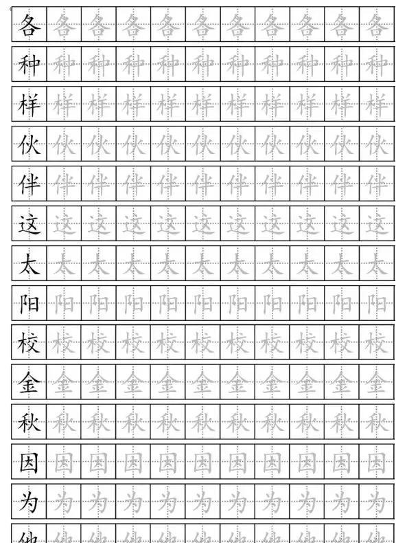 描红字帖(二年级人教版上册可打印空格)