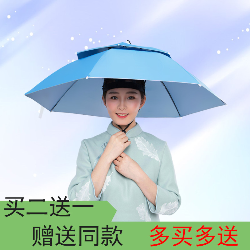 伞帽头戴式雨伞双层防风防雨钓鱼伞卷后