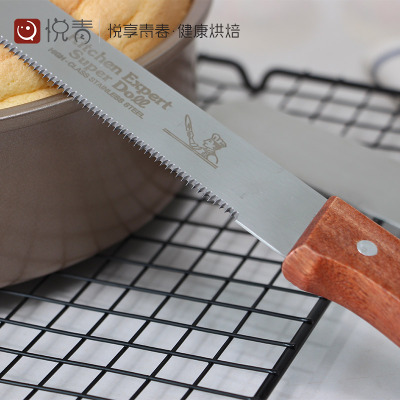 12寸不锈钢细齿梨木柄锯齿刀蛋糕切割刀裱花刀面包分片西点烘焙刀