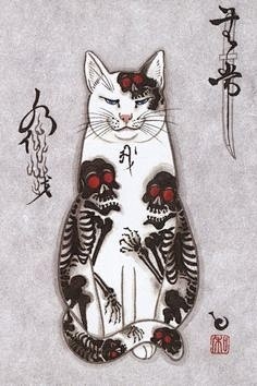 日式传统纹身猫骷髅纹身图案手稿-纹身手稿大全