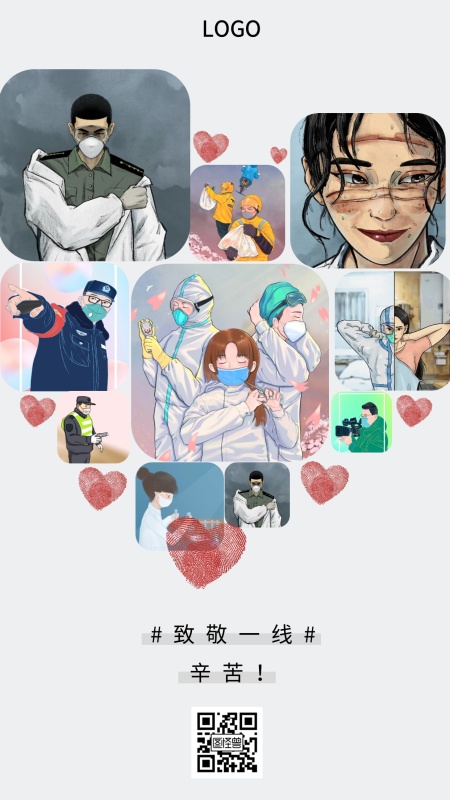 爱心拼图致敬一线疫情公益手机海报