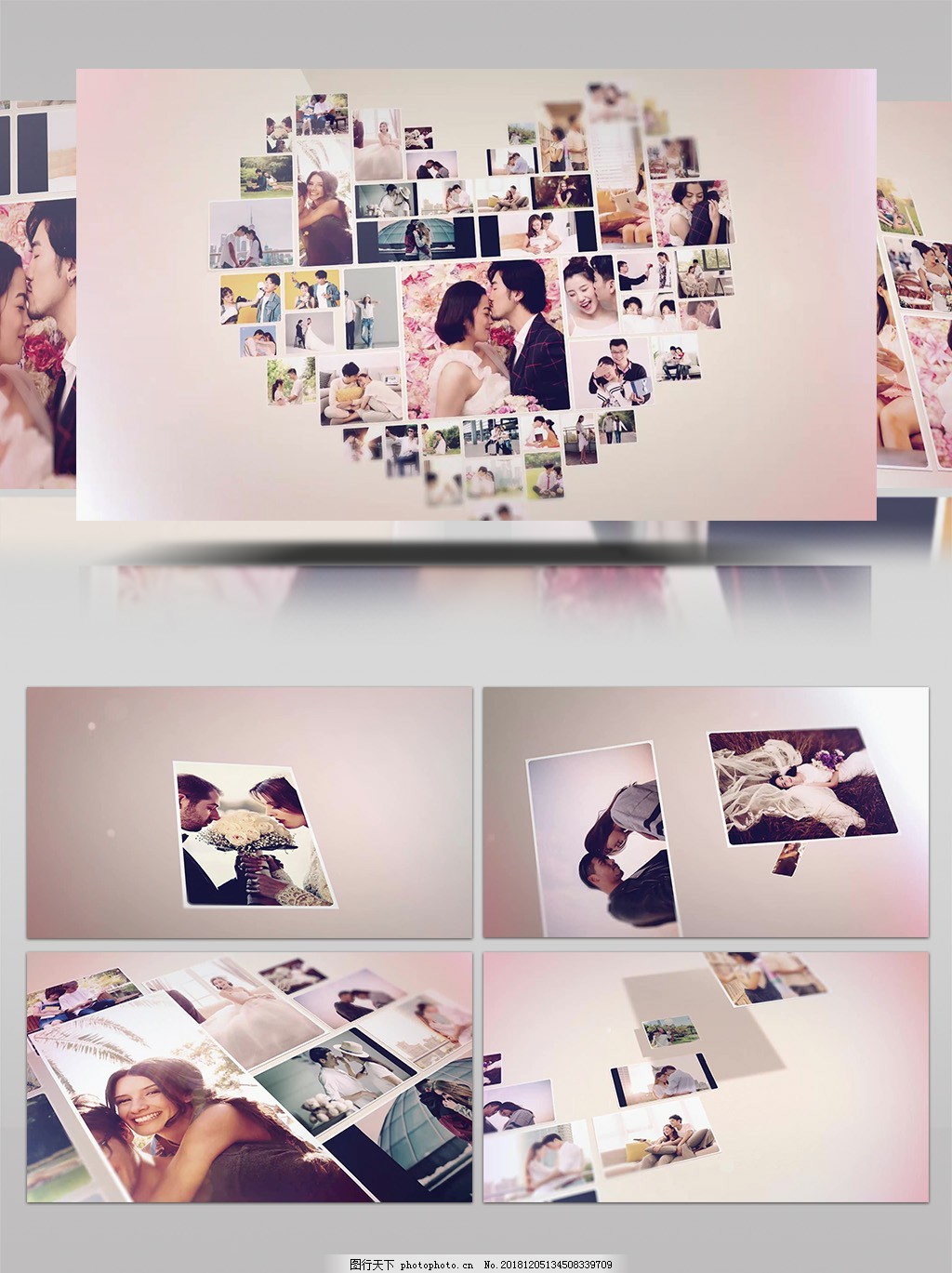 降落爱心拼图婚礼摄影照片视频专辑AE