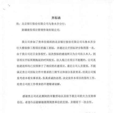 第一名放弃中标_中标后弃标函模板_放弃中标