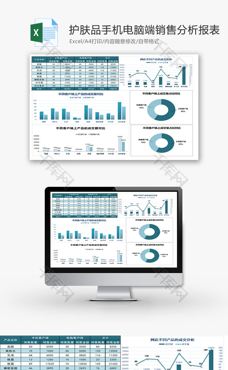 护肤品手机电脑端销售分析报表