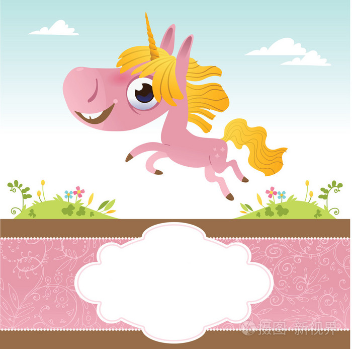 与卡通粉红独角兽卡