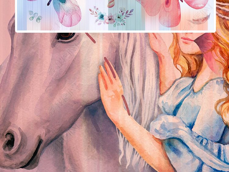 水彩的粉红独角兽图