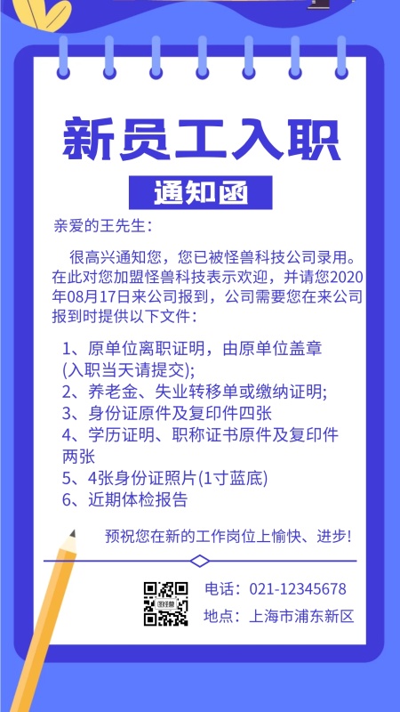 入职通知图片-入职通知模板-在线设计制作-