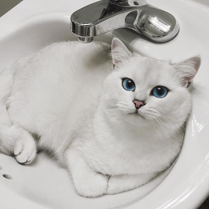 世界上最漂亮的猫!英国白猫大眼幽蓝颜值