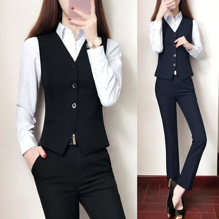 春夏职业装女装套装西装马甲酒店银行前台马夹套裙工作服女通勤OL