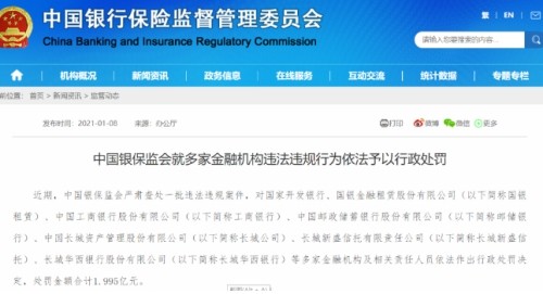 21张罚单1.995亿元!工行、邮政、国开行榜