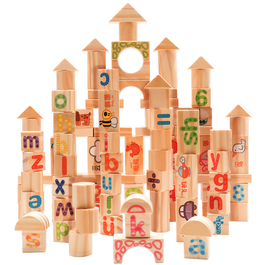 52粒榉木学拼音木丸子品牌积木 桶装城市