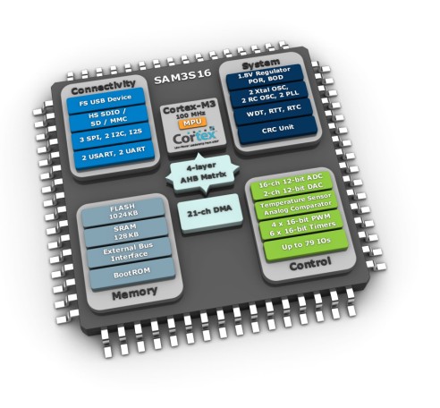 爱特梅尔提供SAM3S16 Cortex-M3微控制