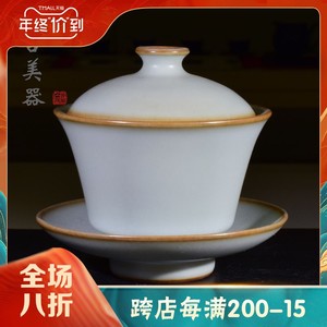 台湾茶具自慢堂玻璃盖碗耐热玻璃秋叶三才