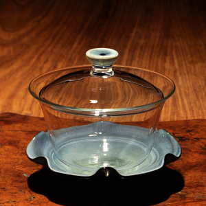 高端玻璃 自慢堂 透明托 绿玻璃盖碗