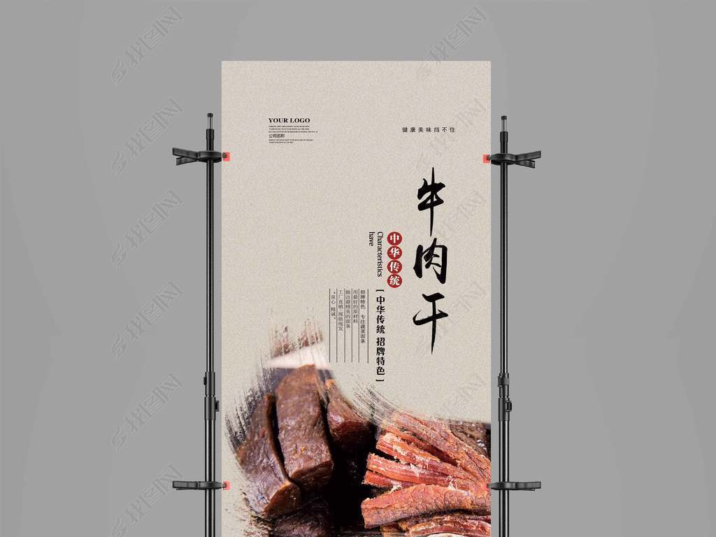 牛肉干X展架易拉宝模板设计图片下载-我图网