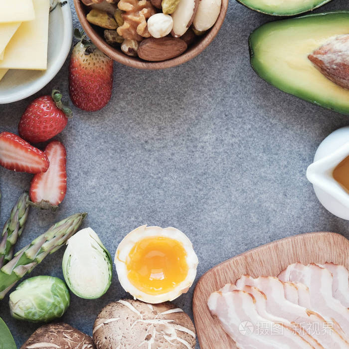 酮 (生酮) 饮食概念。平衡低碳水化合物食品