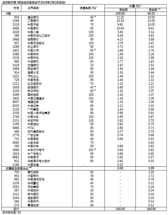 关于恒生指数及恒生国企指数的调整