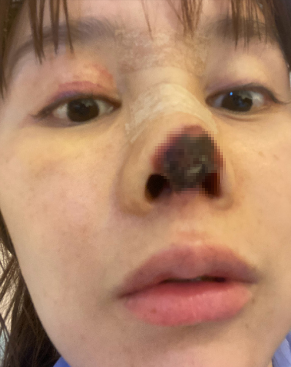 女星自曝整容失败:晒鼻头坏死发黑照,看得