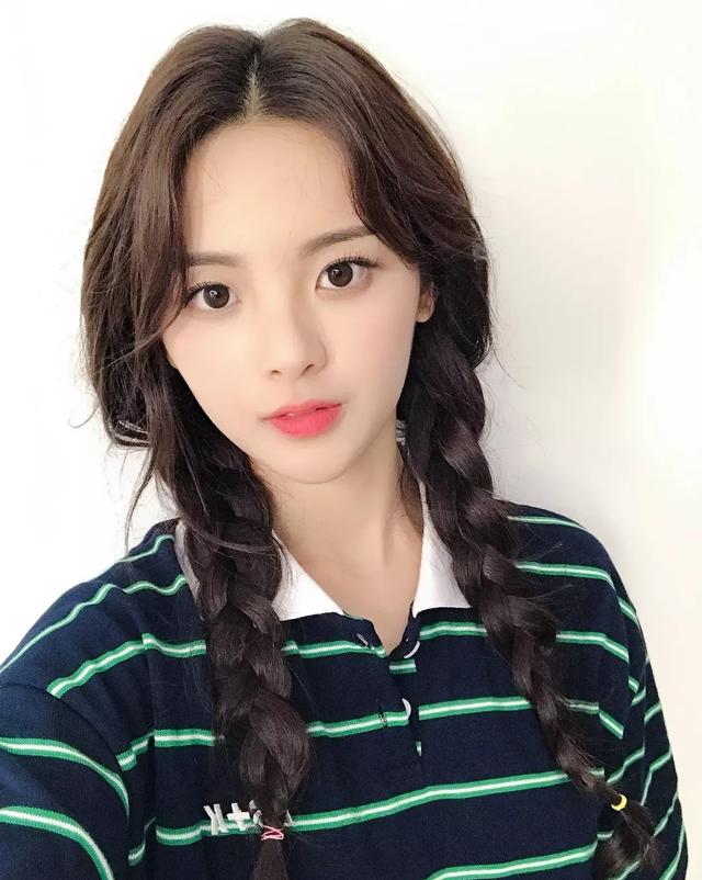 条开叉的牛仔裙,搭双辫子发型少女感不减!