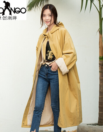 2018秋装连帽打结直筒长款里长款风衣