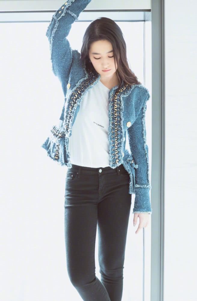 42岁赵薇就是不服老,一袭方格衬衫配牛仔