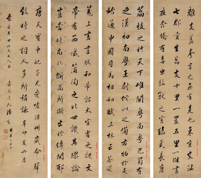 潘霨 1891年行书节录蔡襄《荔枝谱》四屏