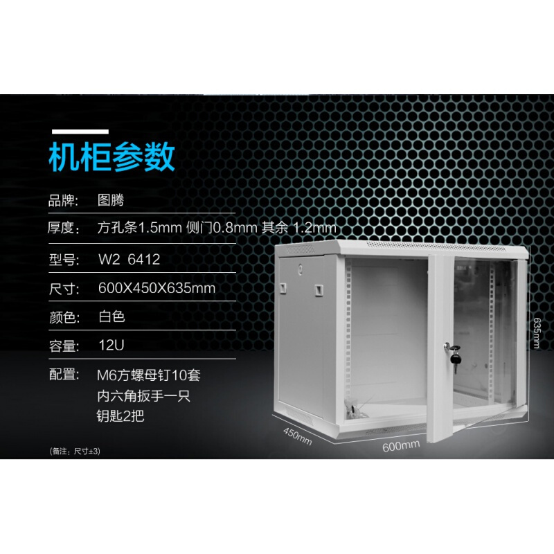 图腾机柜0.6米高墙柜W26412机柜12U网络
