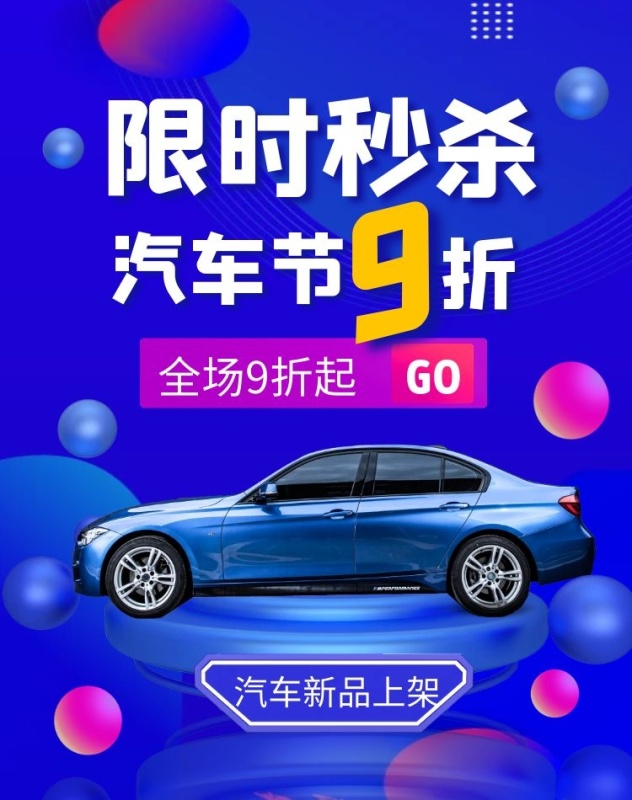汽车节秒杀渐变创意电商全屏海报