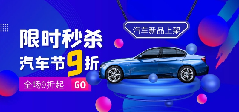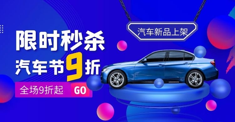 汽车节秒杀渐变创意电商横版海报