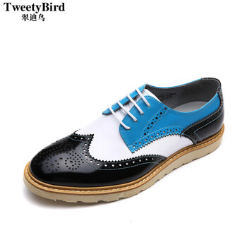 翠迪鸟 时尚拼色布洛克雕花男鞋英伦个性